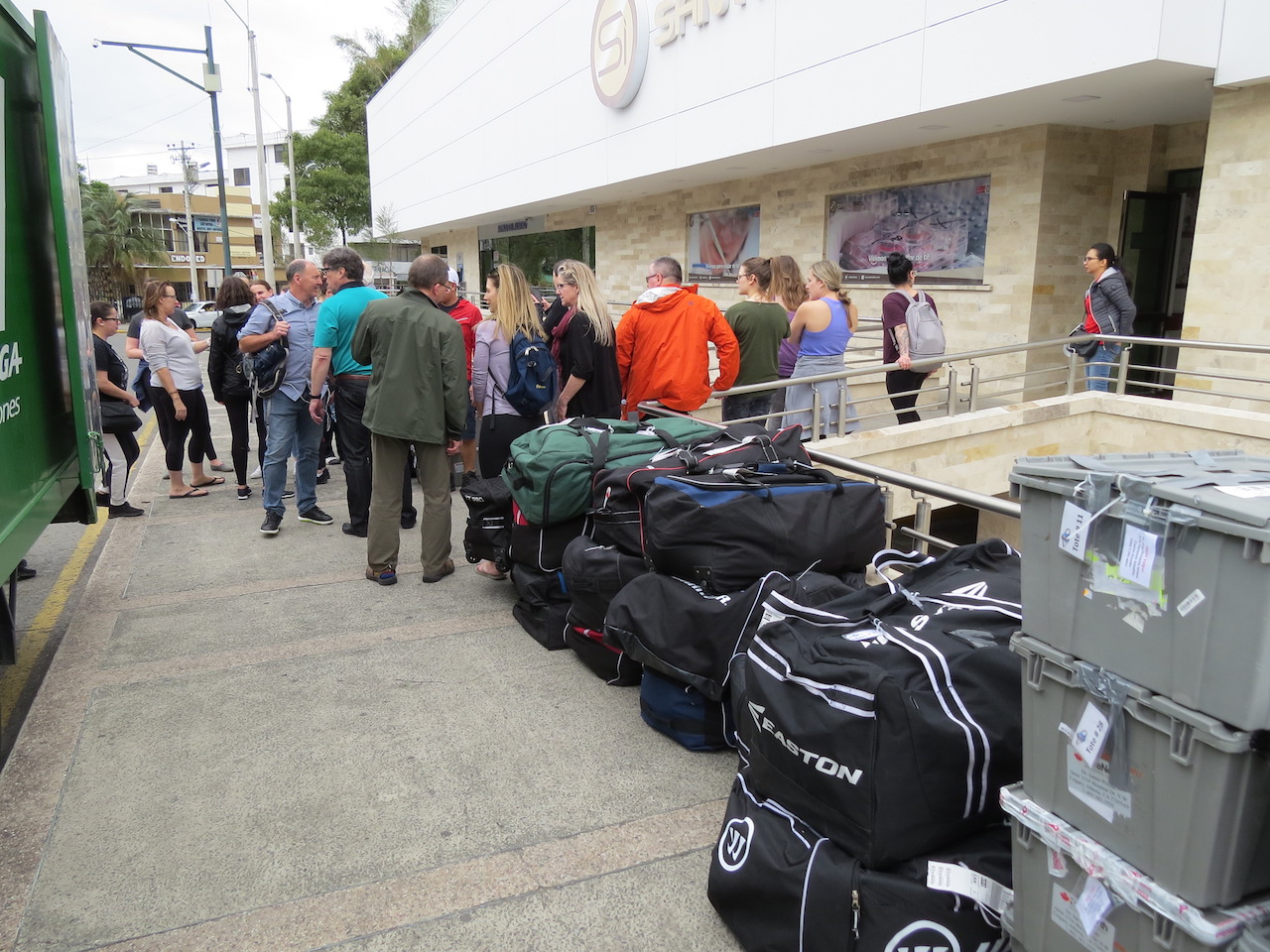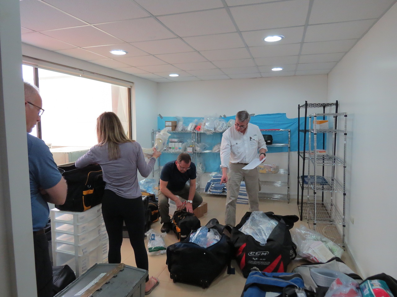 The team assembled at the airport in the early hours of Tuesday morning amidst Calgary’s cold and heavy snowfall. It’s a great day to escape Alberta’s winter weather and head south to warmer climates! Many of the volunteers are well seasoned from previous years with the mission and as a result, organizing bags and equipment across team members feels like clockwork. All of the hard work, planning and organization for this trip is evident as members find their bags, collaborate and make their way through the airport’s rat maze. We felt a twinge of pain for the 2 United Airlines employees who began their 3 am shift to a train of 70 totes and hockey bags that required checking.