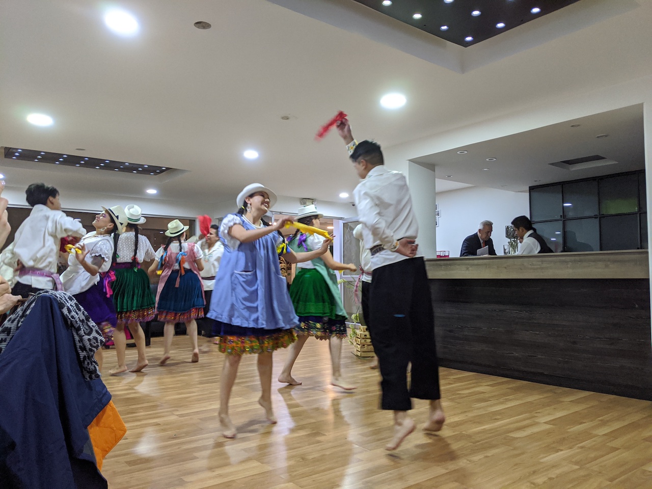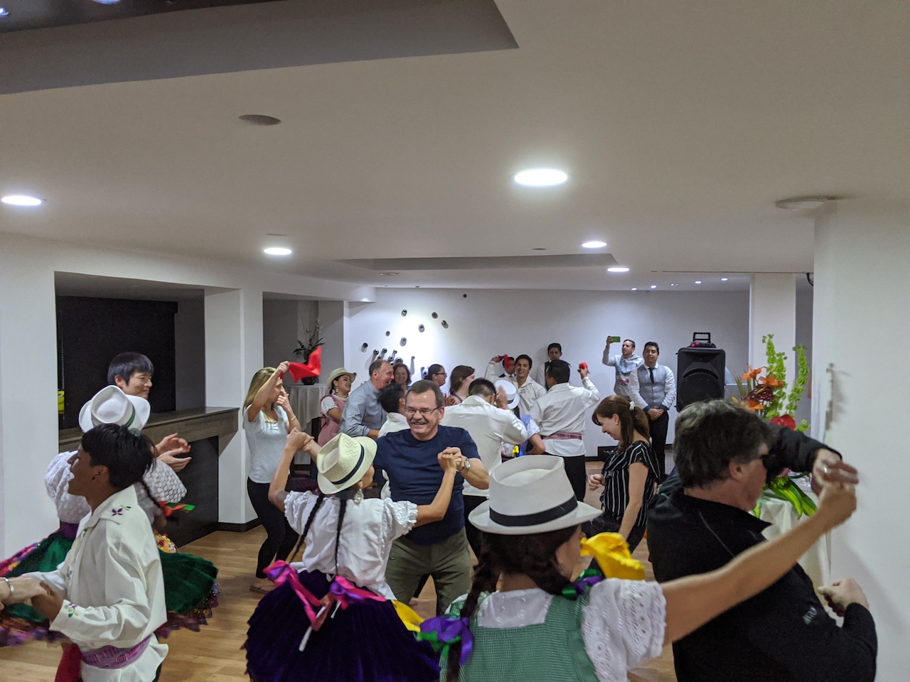 After a quick rest in hotels, the team hopped on a short flight to Cuenca. Upon arrival, everyone found their rooms and took a quick siesta before lunch and a team meeting. The hotel surprised everyone with a group of energetic and entertaining local dancers performing a traditional Ecuadorian dance. The performers ended the performance by sifting through the jet-lagged room, beckoning to join the dance. This was just what everyone needed in order to continue with setup in the afternoon. Lunch finished with a speech from Dr. Powell, impressing how efficient and high performing this group of people have become on these missions. Dr. Manuel Avila, a local team member also offered a blessing to everyone participating in the mission.