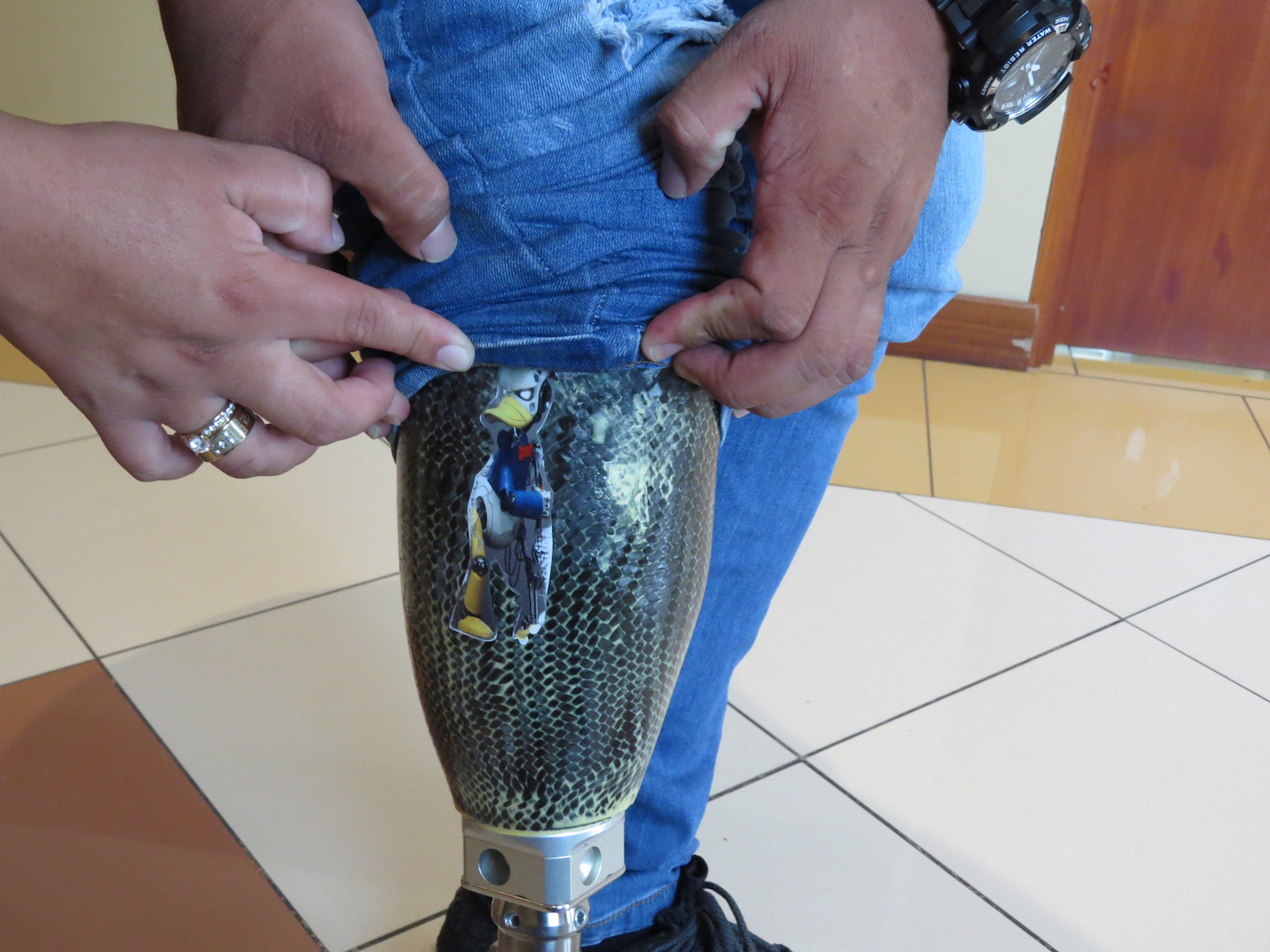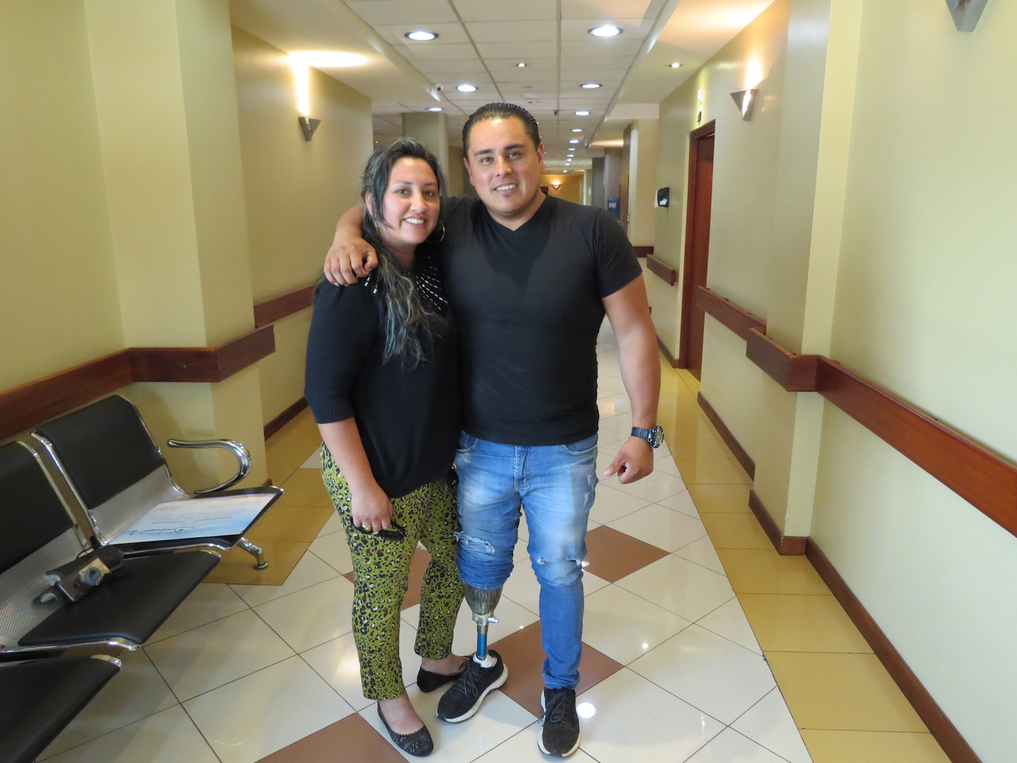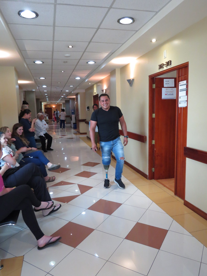Last Saturday, we mentioned that we were excited for one of our previous patients, Freddy, to come visit our team at the hospital and catch up with him and his wife. This morning we had that chance as Freddy came up to the ward and surprised us around 10 am! In 2017, Freddy who had a young family at the time visited our clinic at the rotary on crutches unable to bear weight on his right foot. He had fallen out of a tree and hurt his lower leg and had been suffering due to this injury ever since. After falling out of the tree, he had endured 48 surgeries over 2 years trying to fix his leg. Our team at the clinic felt that it was best to amputate below his knee, and after consideration with his family he agreed to have the procedure done. Today, 3 years later, he came back to visit and share how his life has changed after the surgery. Freddy has finished his marketing degree at university and plans on opening a restaurant. Him and his wife Julianna have also recently had a 3rd child since his surgery and Freddy has completed the 2 km swim in an iron man race, tag-teaming the triathlon with 2 other para-athletes. He has a prosthetic leg that he received from the Harley Davidson Charity, and says that it works so well that most other students at his university never even knew that he had a prosthetic.