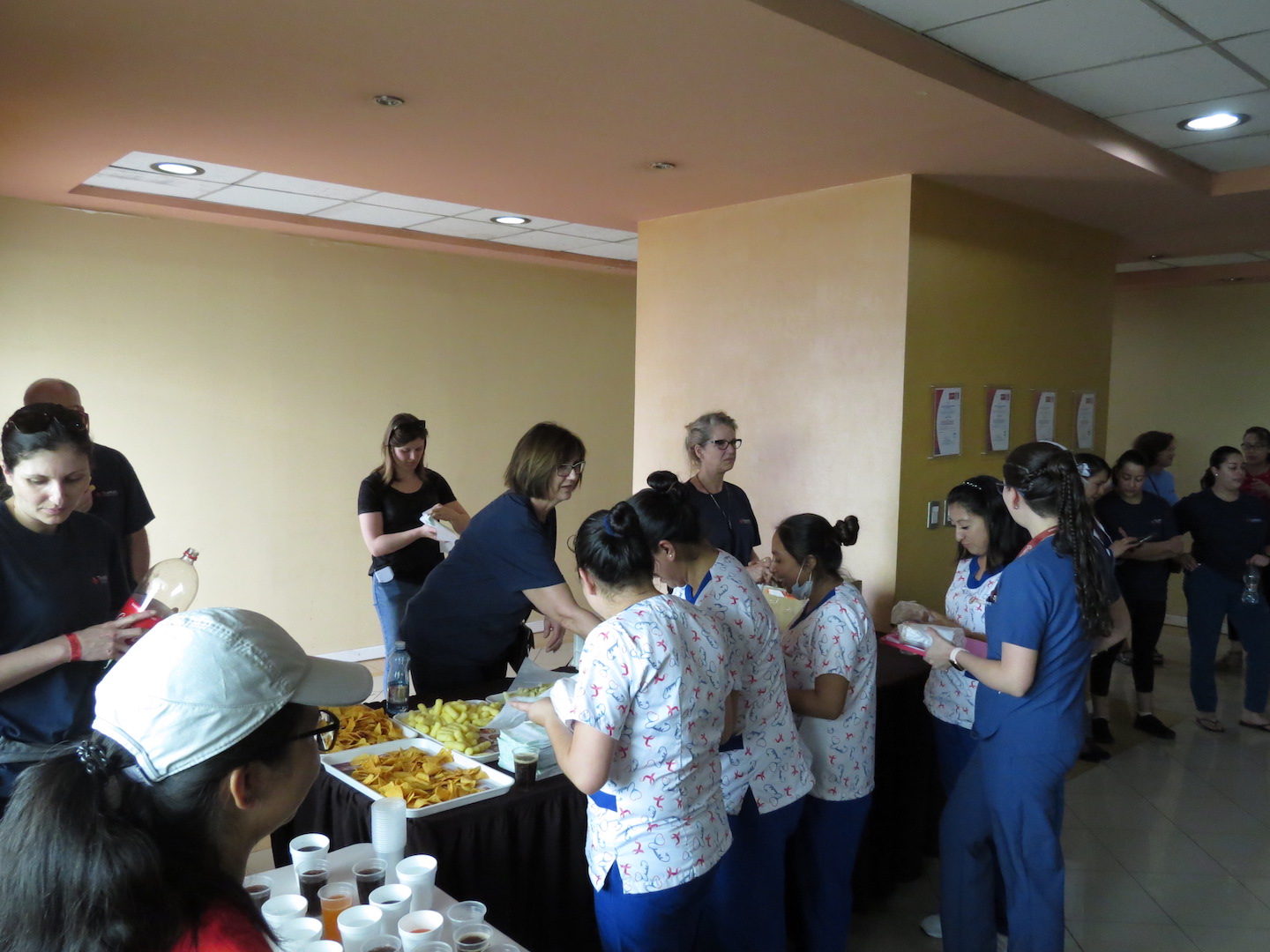 With our time at the Santa Ines hospital winding down, we are more flexible to show our appreciation to the staff for all of their help with the mission. They set aside almost an entire floor of their hospital for us to run our ward, ensured we had access to all the resources we needed perform surgeries, did laundry and even fed our team lunch every day. Today, we showed a small token of our appreciation by providing lunch for their staff on the 5th floor.