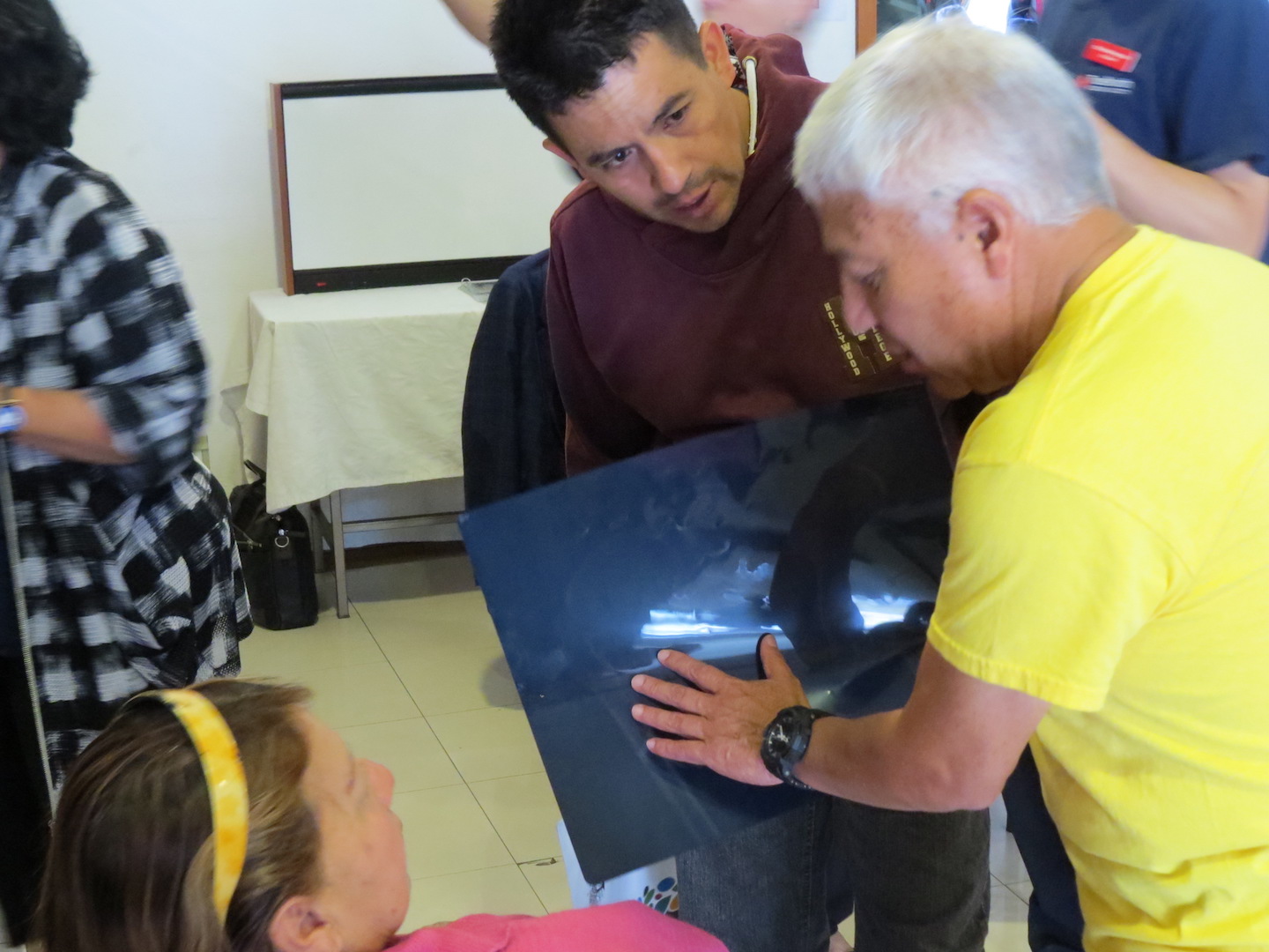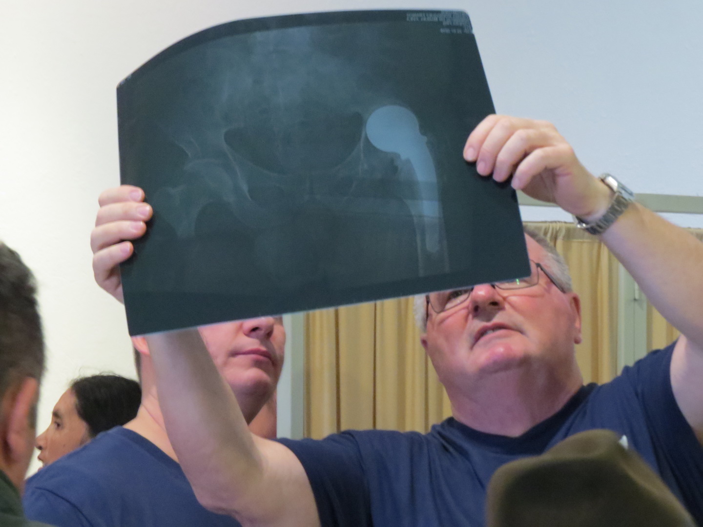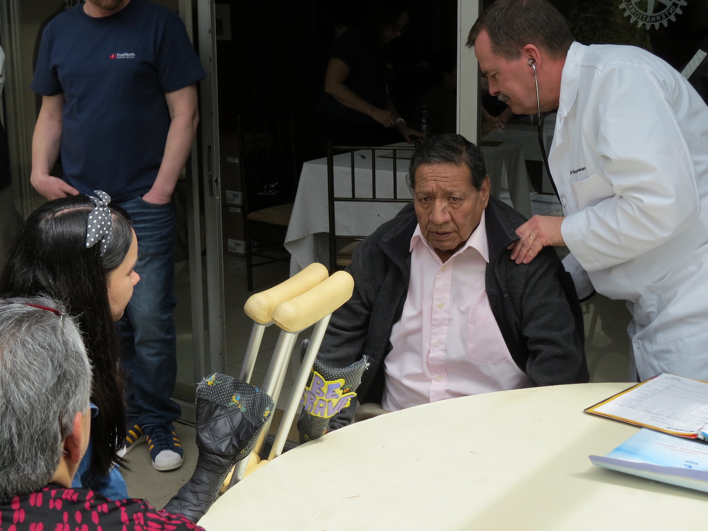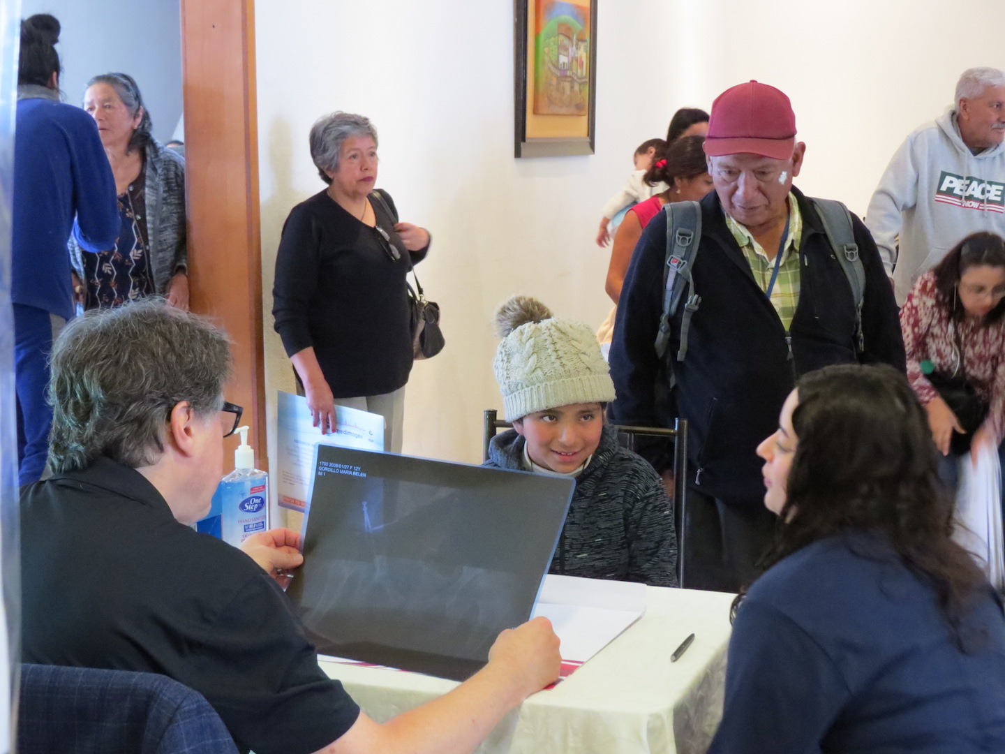 Arriving at the clinic in the morning means wading through a crowd of people that have lined up to be seen that day. Trading quiet “Buenos Dias’s” as we slip through the crowd, the mission begins to feel very real and meaningful. Once inside, we are met with yet two more waiting rooms full of men and women of all ages. Screening begins for the day as the doctors sit down with interpreters and potential patients, examining records and x-rays that were previously taken. The flow of people begins to propagate through the stations that had been set up yesterday to handle the different parts of processing. Soon the whole building is buzzing with people, even spilling out to the courtyard in the rear of the building where anesthesiology conducts a final assessment on patients who have been selected for surgery. So far so good as the clinic team continues to work through the large line of those seeking help.