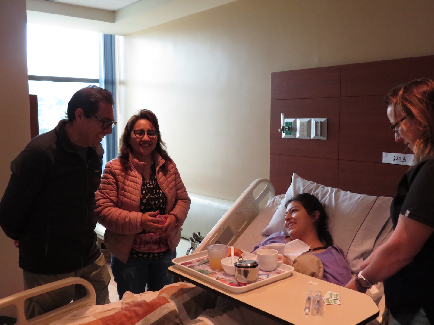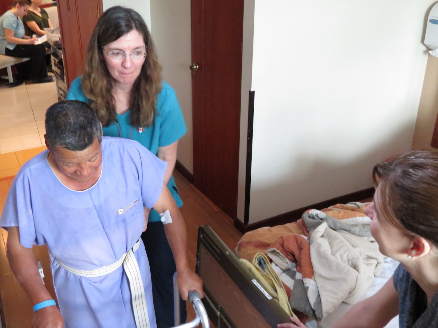Yamile, who had her PAO operation yesterday was up and walking this morning and blew the socks off our physiotherapy team by walking all the way to the door of her room and back during her first journey off the hospital bed. For Yamile, this small walk would have been an extremely painful but very important part of her recovery.