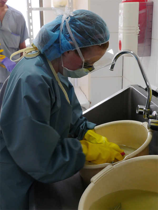 Instrument processing has lots of help, anesthesia has a 3rd anesthesiologist rotating through two OR’s this year – helps us keep up with drug orders and allows anesthesiologists to do pre-op and post-op assessments with patients. As well, this frees Anesthesiologist, Dr. Fermor for training and education sessions with local medical students. Dr. Lavoie notes that he had good cases yesterday and some instrument enhancements for future missions would be helpful for these special case. Pain control for patients on the ward is good. The first patient went home today. The translators have been very helpful – thank you! General volunteers are staying busy – more so as the ward fills up – now 9 patients. Physiotherapy is going well. Dr. Temple has been asked to attend at another local hospital during oncology exams.