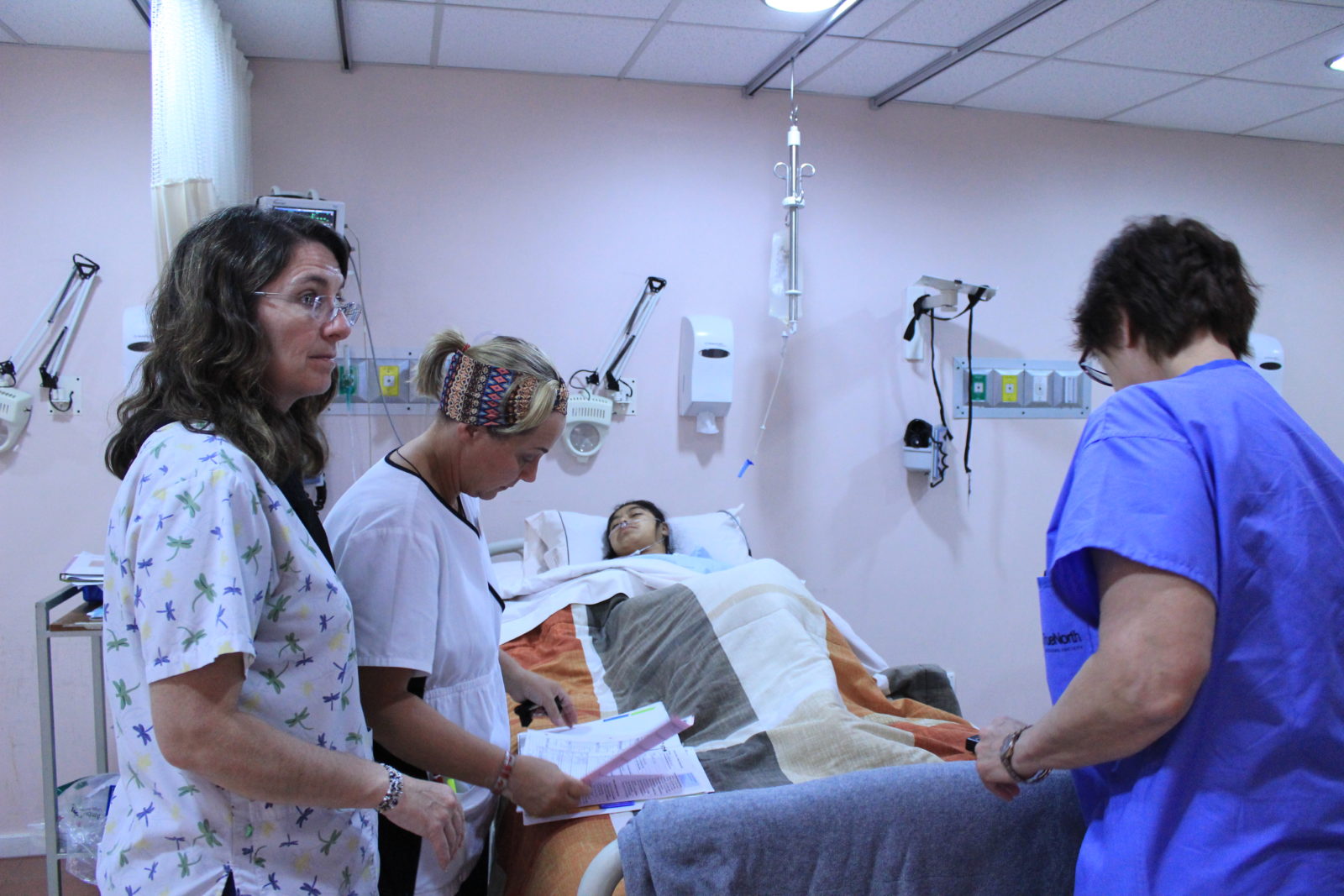 One patient scheduled for today was a young girl (we’ll call her ‘S’) who suffers from cerebral palsy in addition to hip dysplasia. S was seen in clinic last year (2015), but due to the complexities of her medical condition, the True North surgeons felt most comfortable consulting with other specialists at home in Calgary before moving forward with her case. The mission team was excited to see her return to this year’s mission clinic for care and was able to schedule her for surgery.