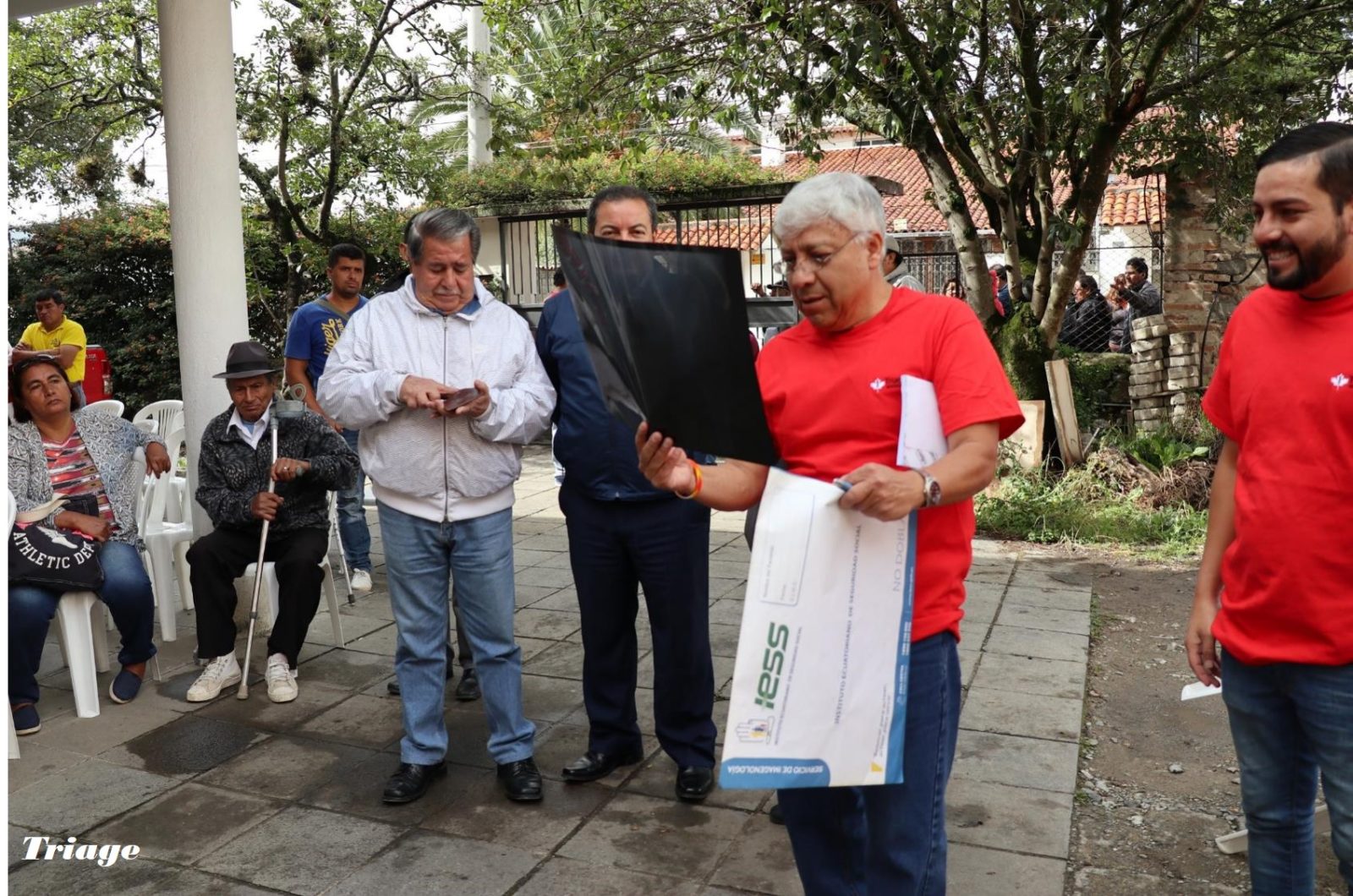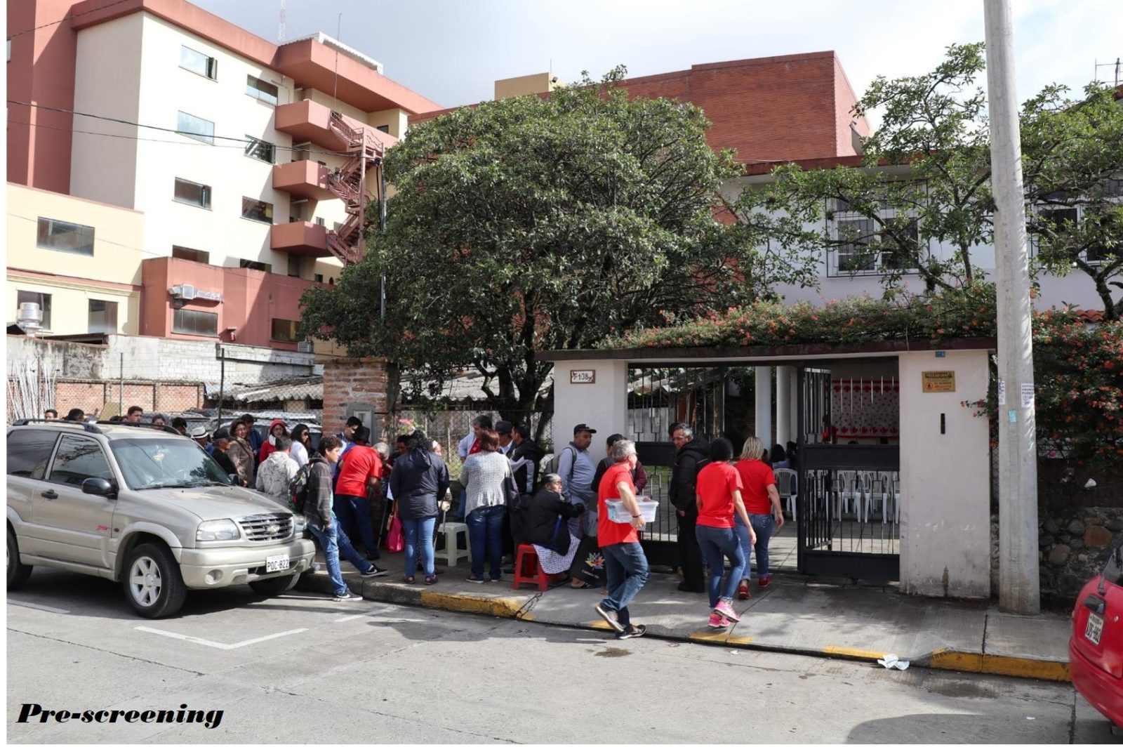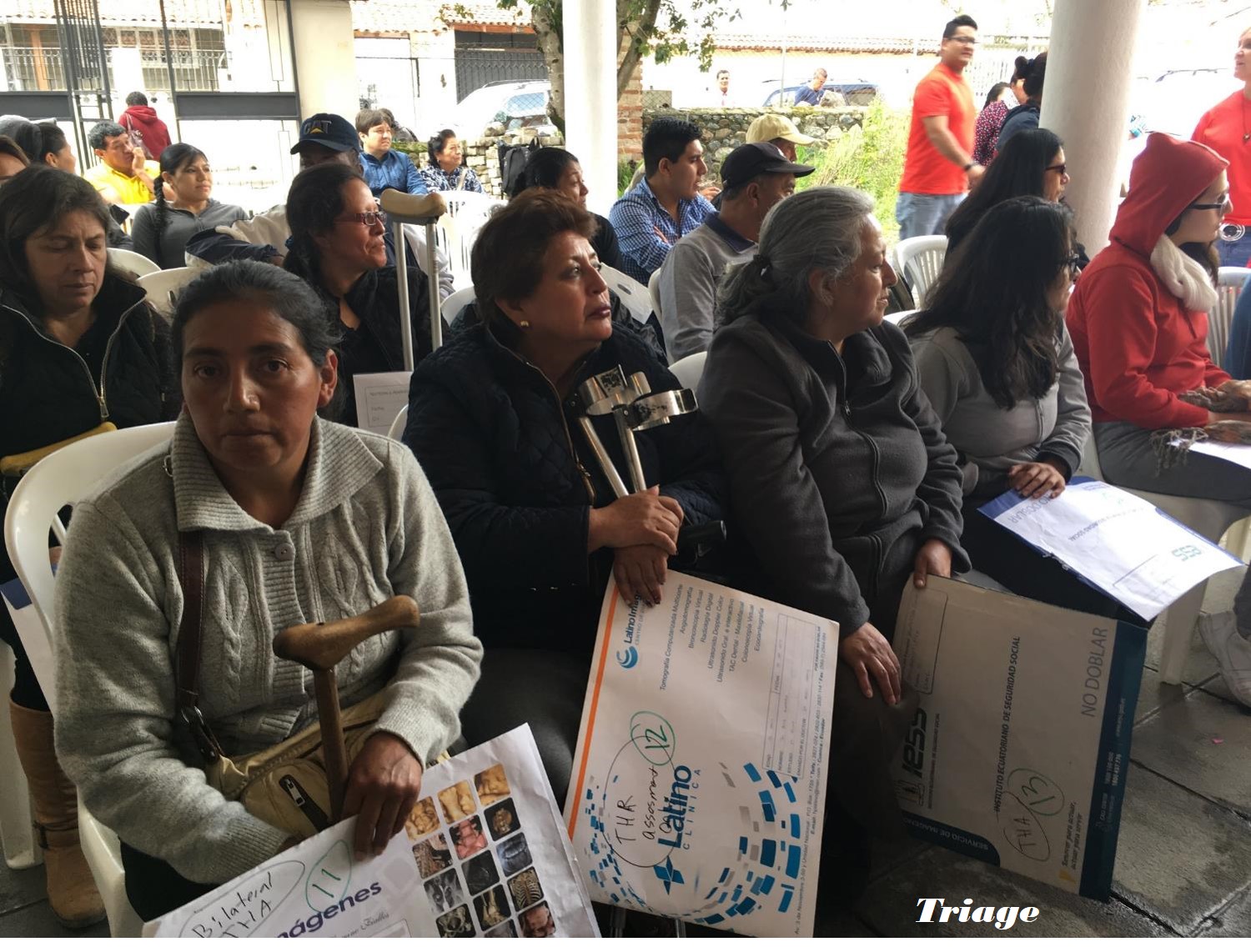 A crowd of people were already lined up outside the metal gates along the stone and barbed wire fence, when the team arrived shortly after 8am. The clinic was scheduled to start at 9am. Several patients with crutches were leaning against the fence. Some were sitting on chairs. One group had a blanket and lots of bags with them – they had travelled from Loja in the mountainous region for 4 hours by bus.
