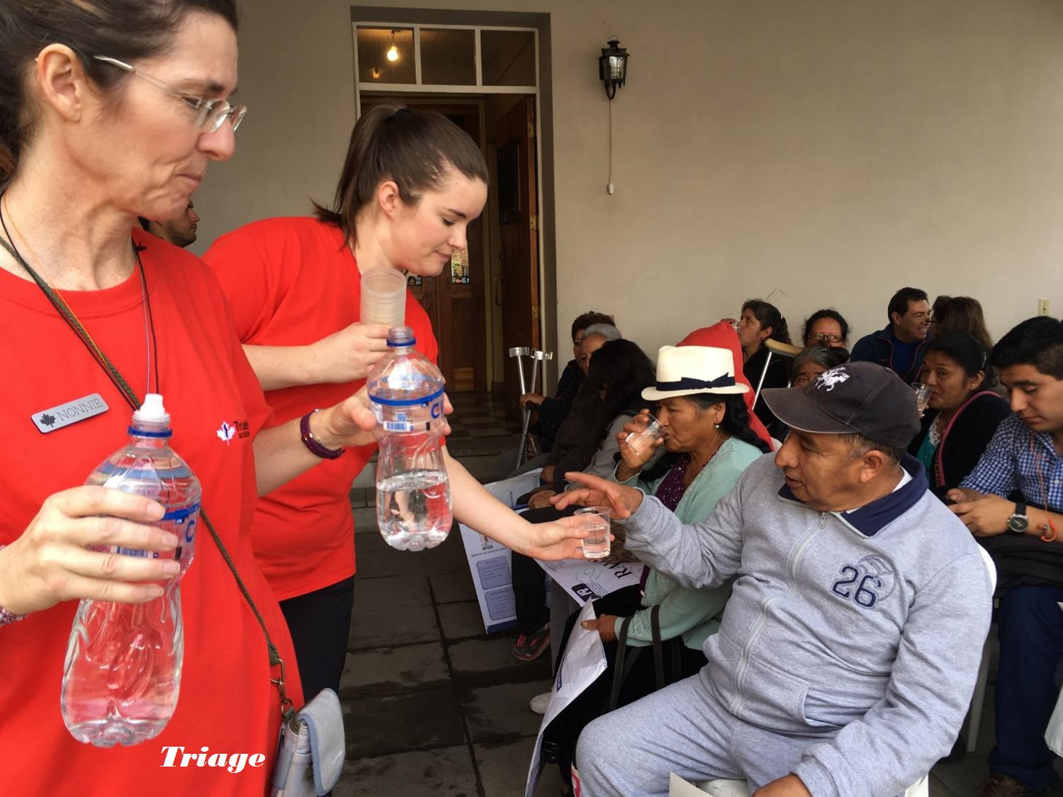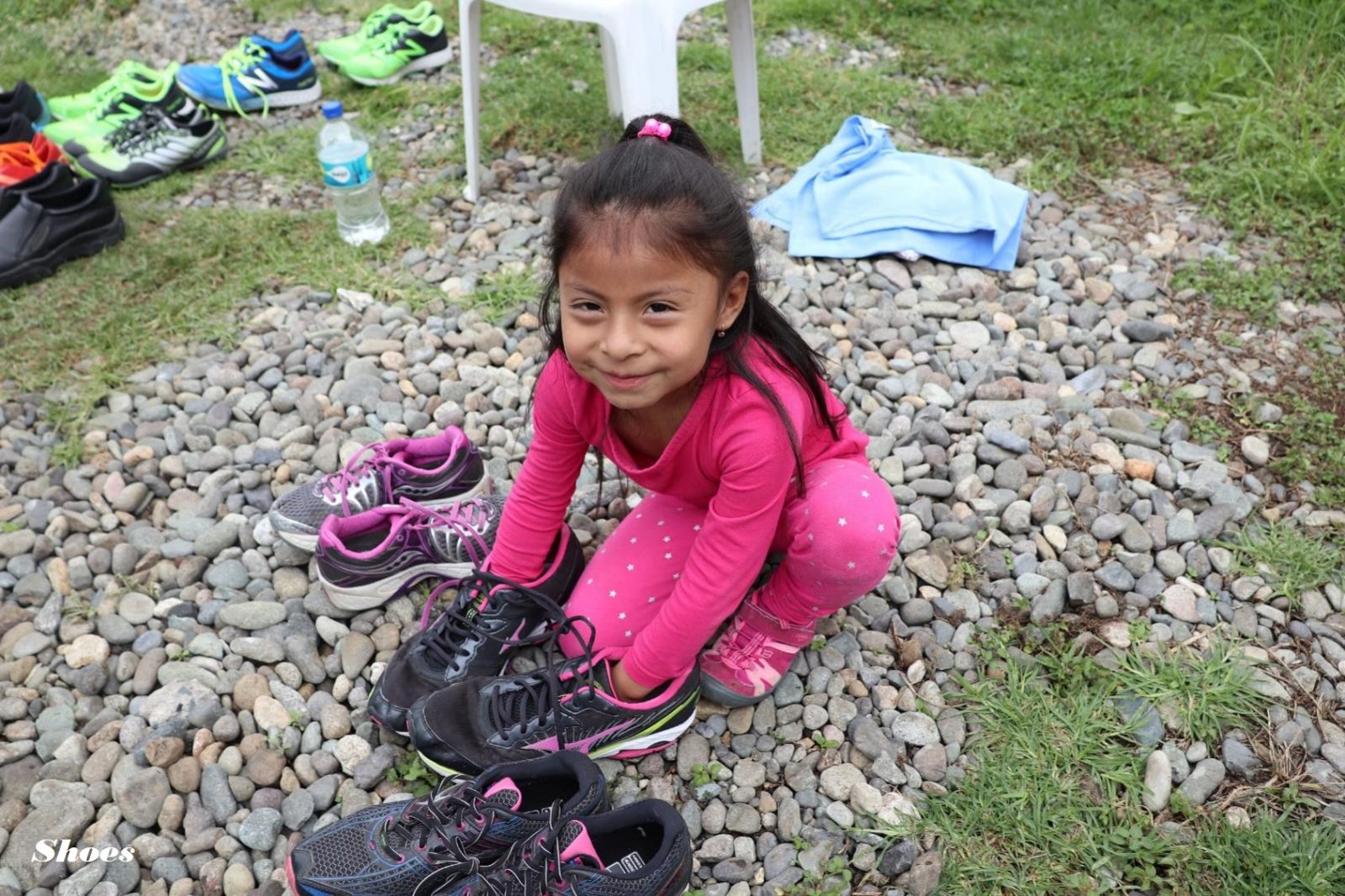 Four first year medical students from a local university came to volunteer as translators. Those students plus our own roster of Spanish speakers, including Nazly, Paul, Tanya, Kaibree, Mike and Dr. Fred were invaluable in communications.   A little special surprise was provided by Michelle. She had arranged for running shoes to be collected by The Running Company in Calgary. These were definitely a big hit as they were given out in the courtyard to those most in need, during the long wait.