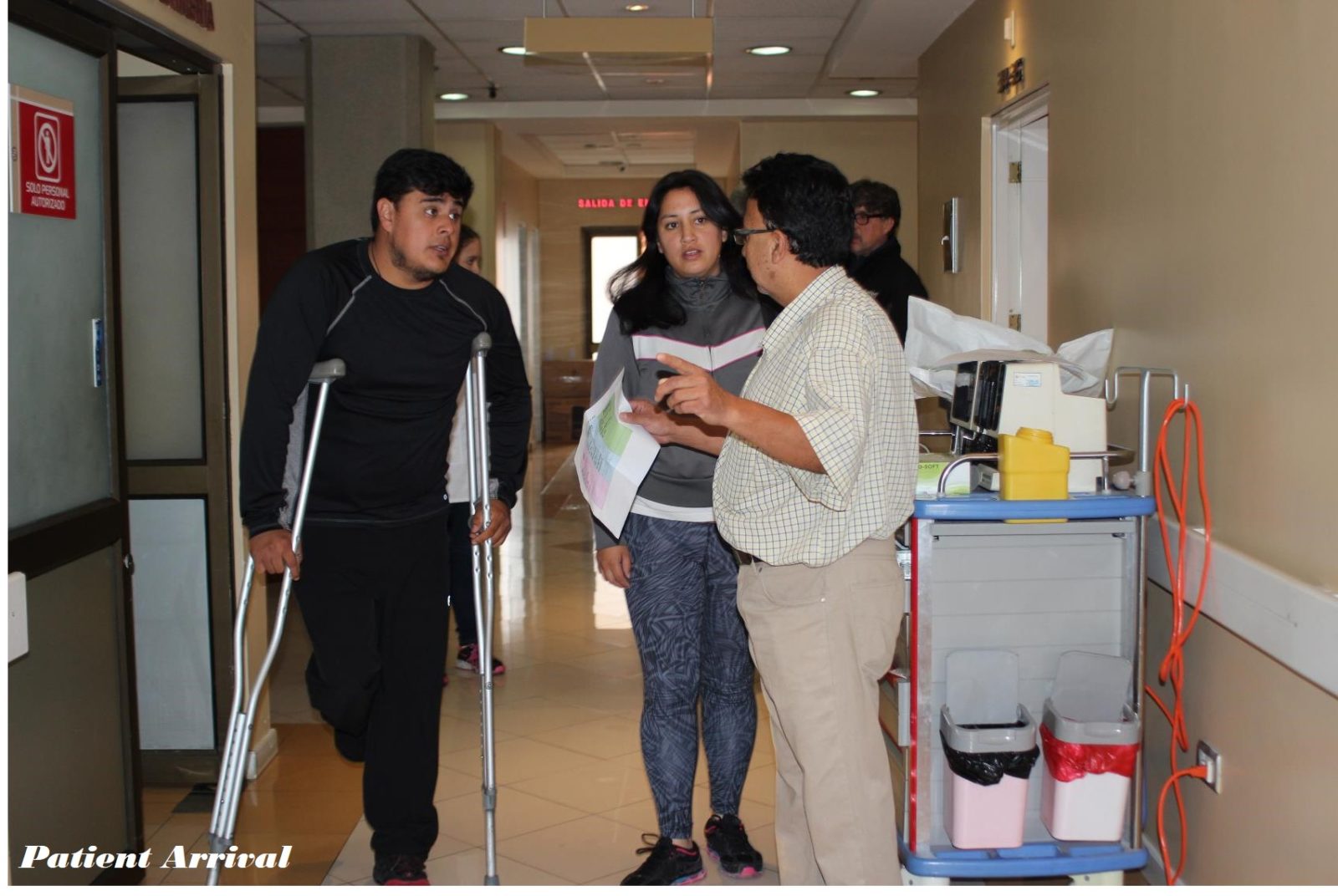 Santiago, a.k.a. Freddy is a good looking, buff, thirty year old from Cuenca. He came to our clinic day this past Friday with his wife, daughter, mother, and two sisters. His father passed away over a decade ago. Freddy was on crutches and we could see that there was something wrong with his right lower leg. He tells us that he fell three meters out of a tree almost two and a half years ago. Since then, he has undergone forty eight surgical procedures trying to salvage his leg. He has been fighting infection and has been on long courses of antibiotics as well as pain killers. Forty eight is a huge number of surgeries. Freddy jokes, in his good English that he should be in the Guinness World Book of Records! He has not been able to work and earn an income. Before the accident, he was supervisor at a large yogurt and milk factory. Now he and his wife, who has a job part time and 7 year old Julian and 1 year old Maria Pac live at his mother’s house. They receive help from Freddie’s mother and sisters.