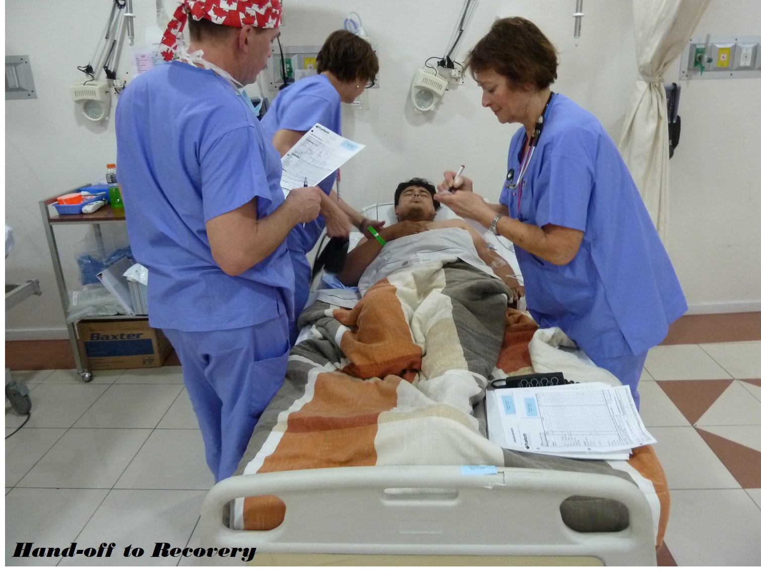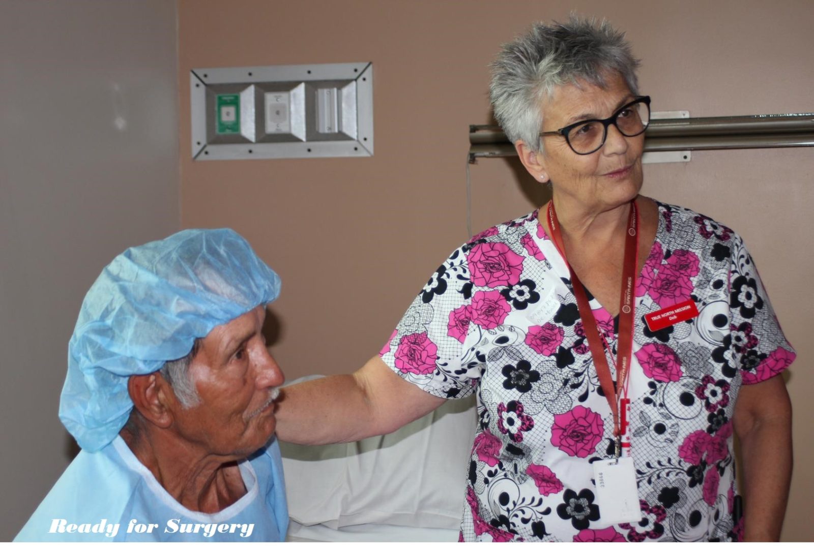 So this afternoon, Freddie had a below the knee amputation of his right leg. We know he must have had mixed feelings, but before the surgery, he was very brave. His wife and sisters were there in his room and his mother, whom he honors as “my angel” waited downstairs. The procedure went well, but he was in pain in the recovery room. Our recovery room nurses, Judy and Deb were so comforting as they tried to reassure him. They were willing to stay all night until Freddy was comfortable enough to be taken to the ward. They even brought Freddy’s wife down to the recovery room to reassure him. It is very difficult for all of us to see another person suffer but it is important to keep the goal for Freddie and his family in mind. Despite his pain and discomfort tonight, as a result of the amputation, Freddy and his family will be in a better position and he will be on his path to leading a normal life. This will include fittings of prosthesis as well as rehab in order to gain his full mobility. From his big smile, we know they have a great chance that it will be a very happy normal life.