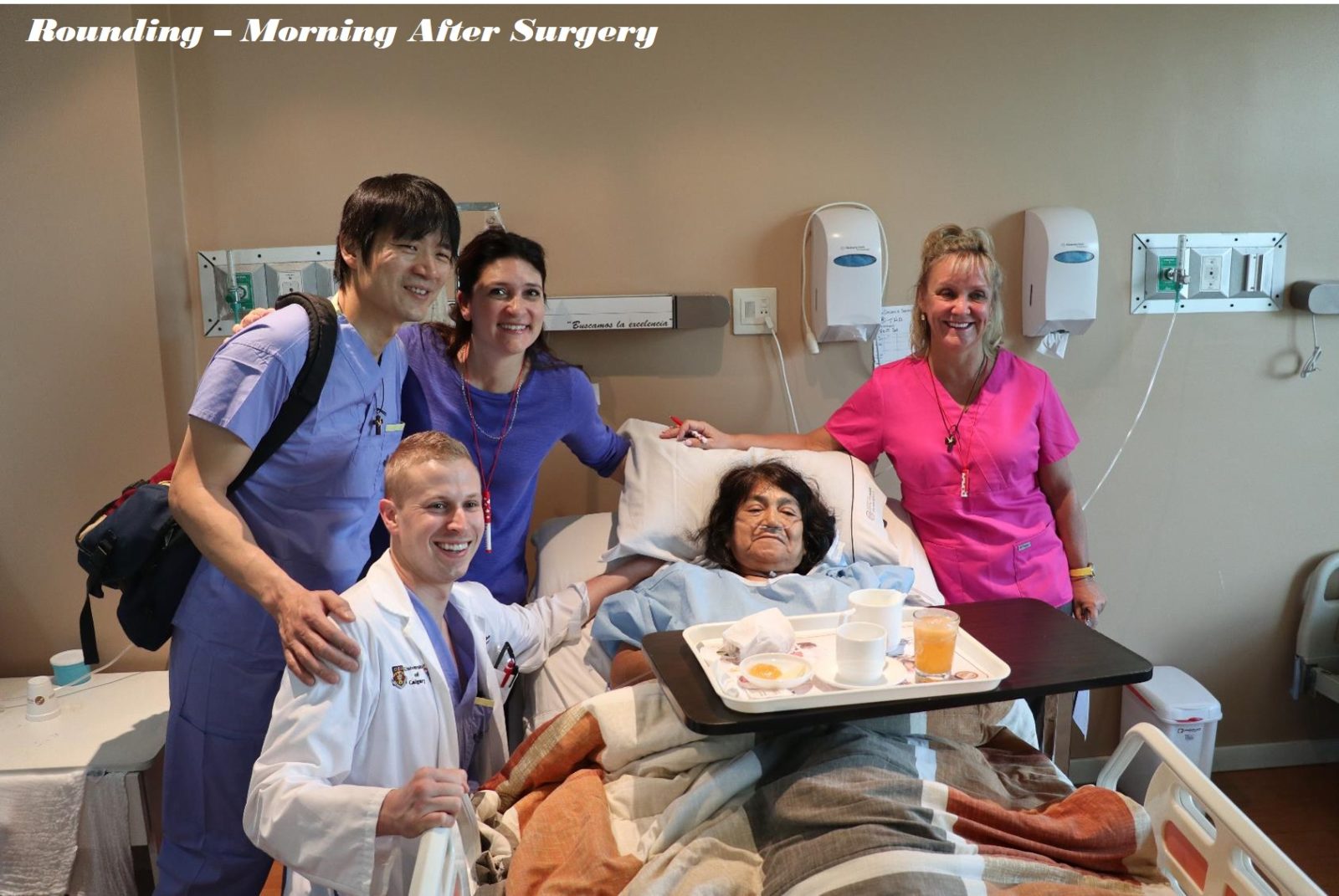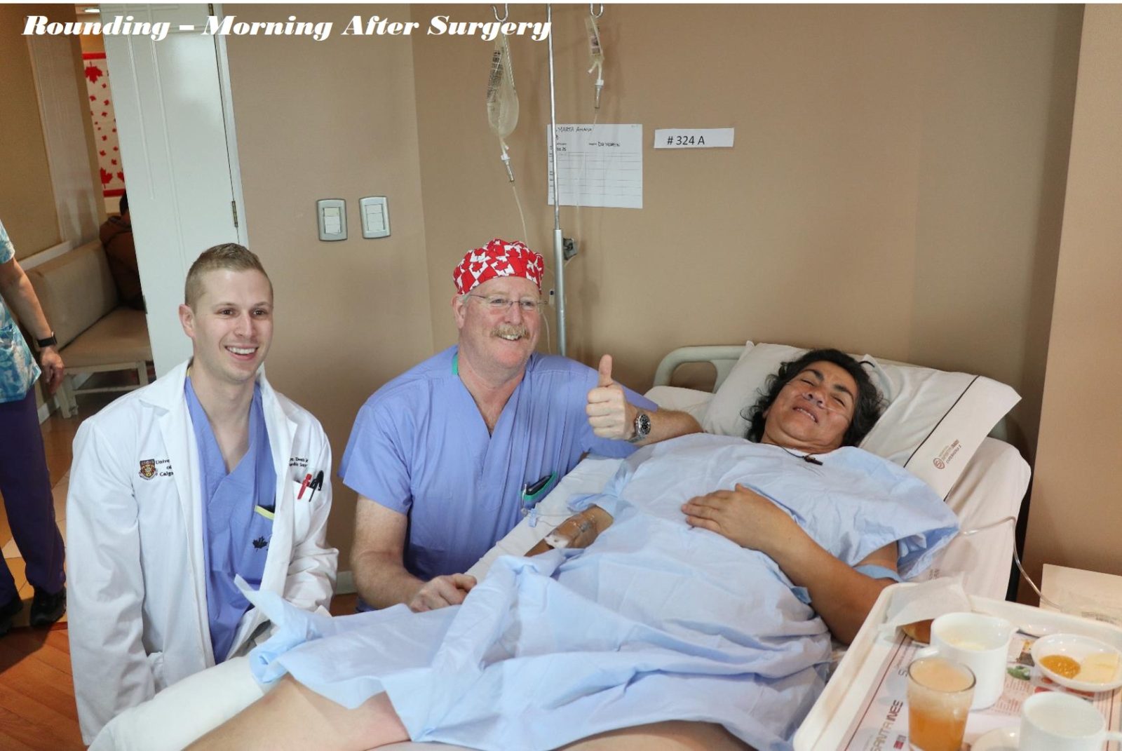 - Seven more people received successful hip surgery. Appreciative, yet concerned family members are keeping vigil on the ward. Families appear to be very close here.