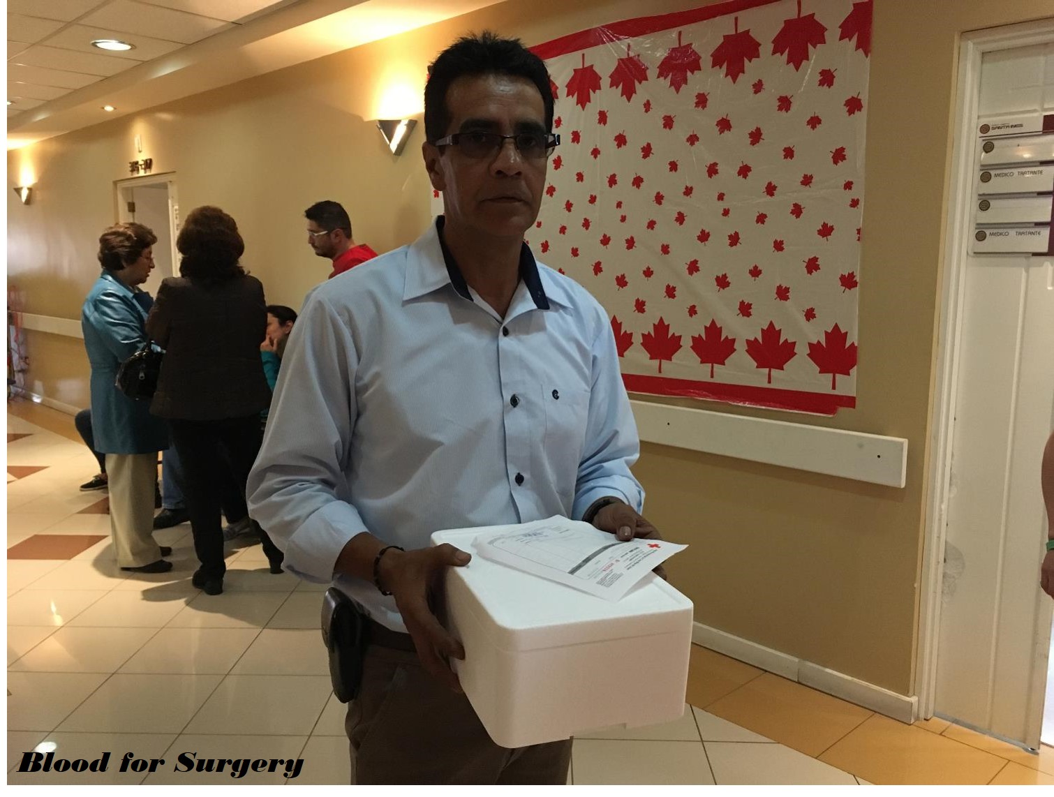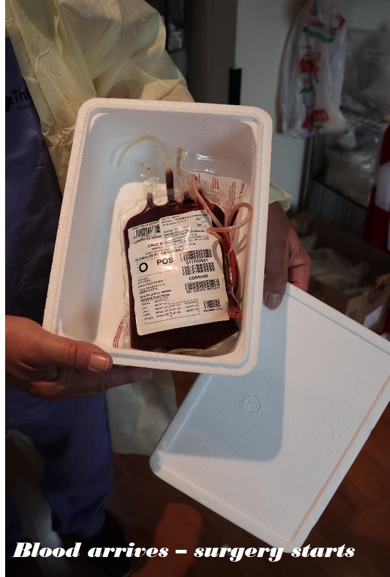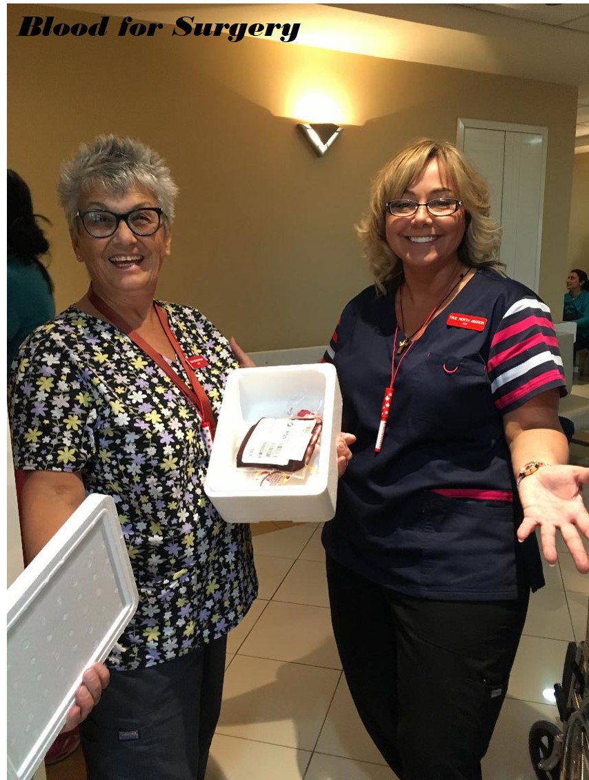 On the serious side, the first two surgeries this morning were delayed because the patient did not bring the required blood with them when they arrived at the hospital. Normally, the patient would arrive at the nursing station with a styrofoam box with unit(s) of blood inside. The surgeons require the blood, just in case it is needed. Safety of the patient is of paramount concern.