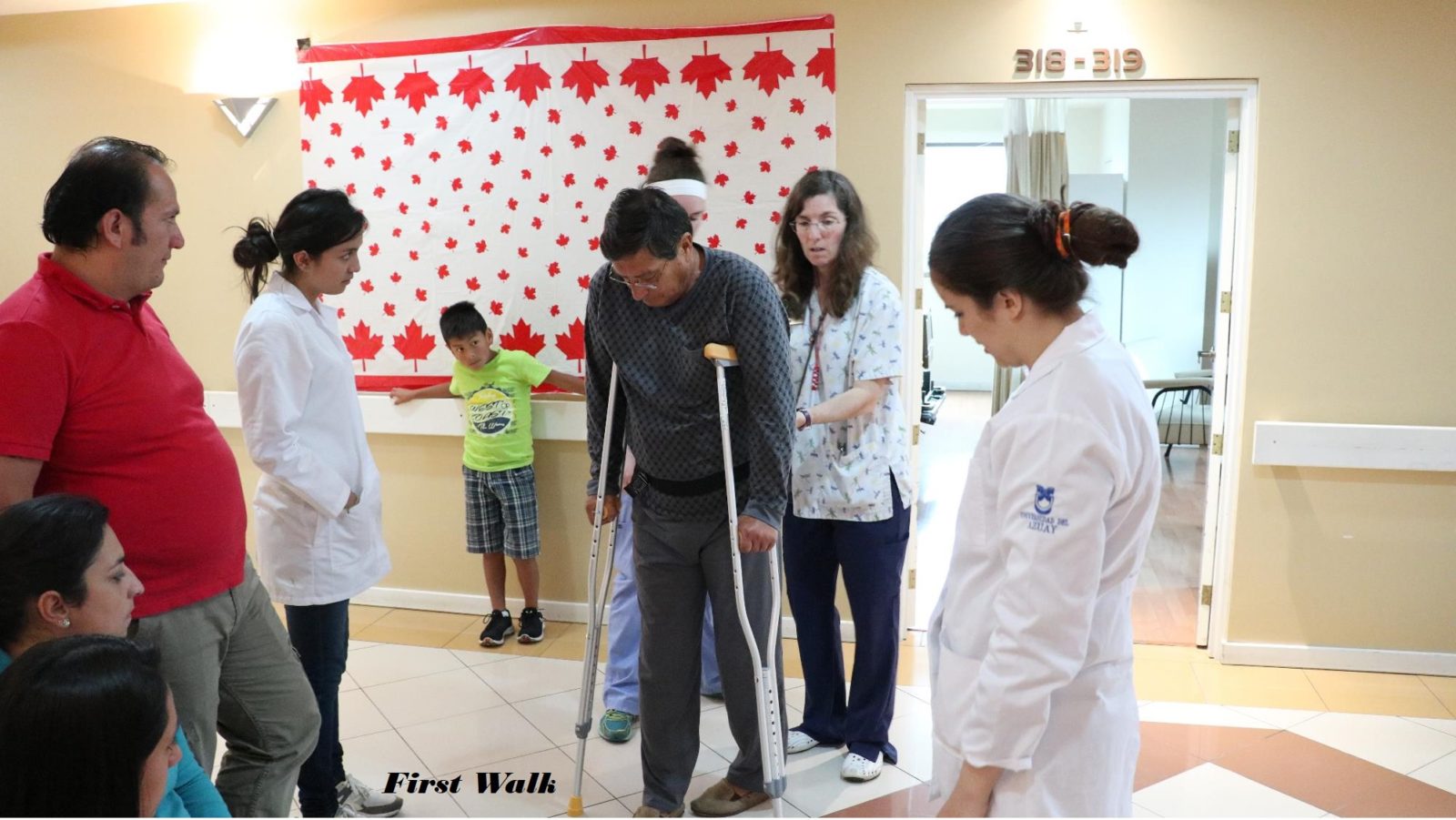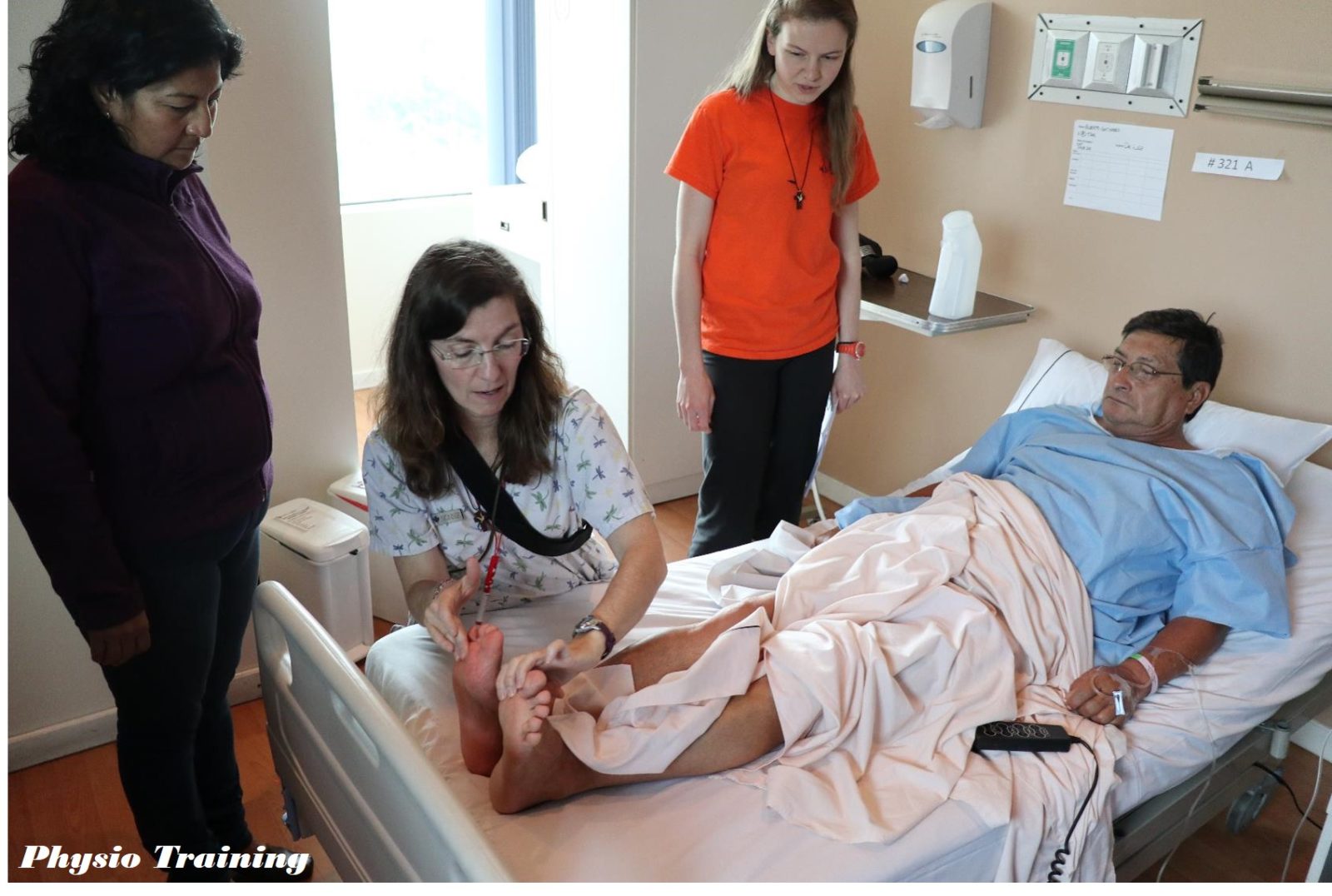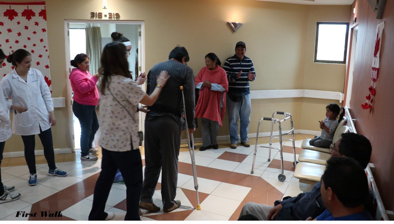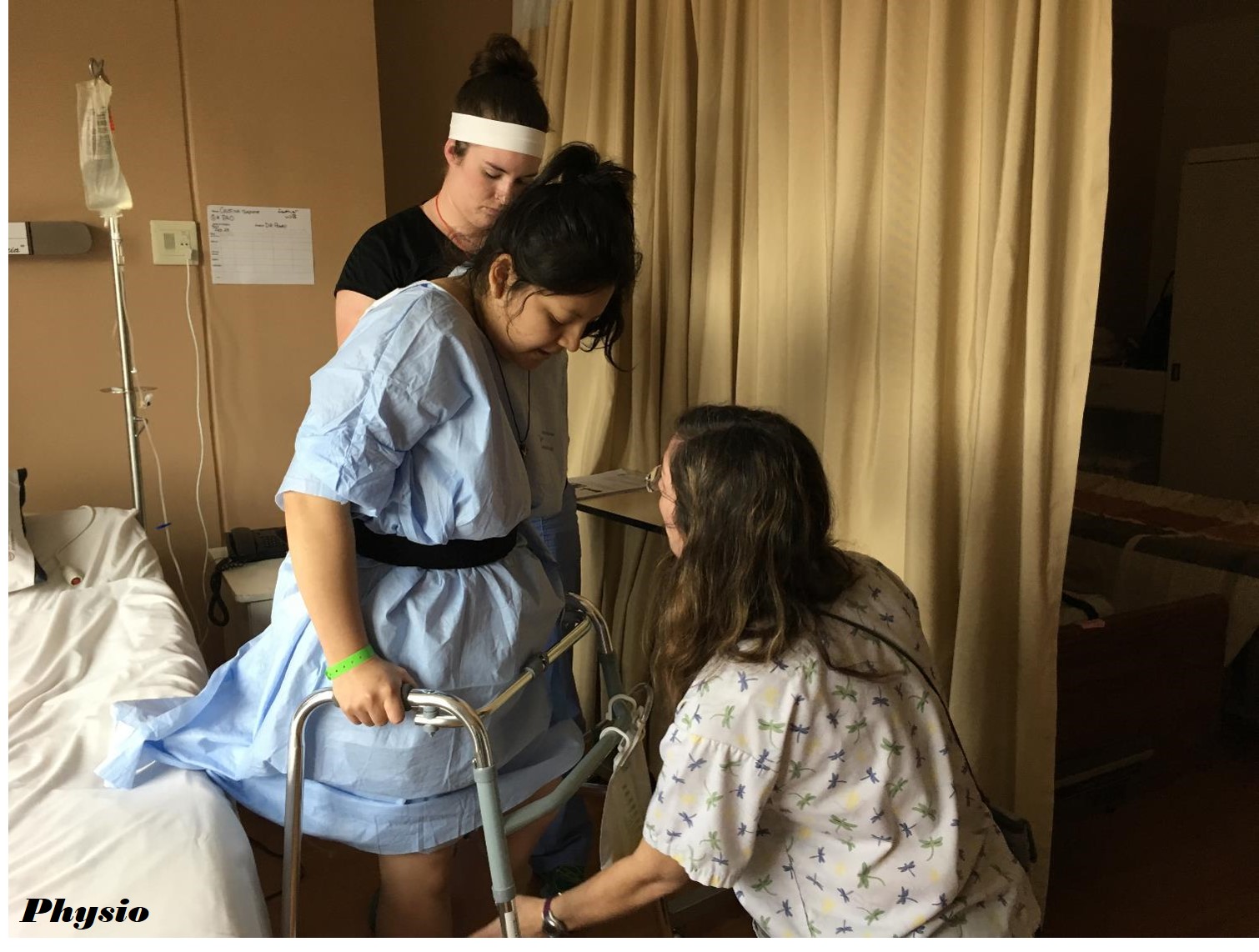 - Out of fourteen patients on the ward, ten have already been up. ( Nonnie was on her hands and knees guiding Cristina, a young patient’s foot so that Cristina could take her first step with a walker.)