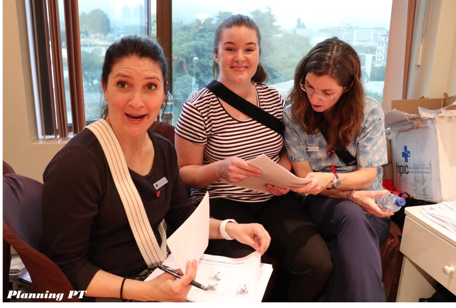 By the afternoon, three surgical rooms were utilized and several patients were already back from surgery. The physios went out and bought pillows and crutches, so that patients could have the best chance for a good recovery. It was hard to believe that soon after that, the physios already started working with post-op patients. Tanya and Nonnie were so cheerful, encouraging and clear in their instructions. At their bequest, the most junior physio, Emily, even turned around and performed a perfect glute squeeze (one of the prescribed exercises) so that there was no misunderstanding by the patient!
