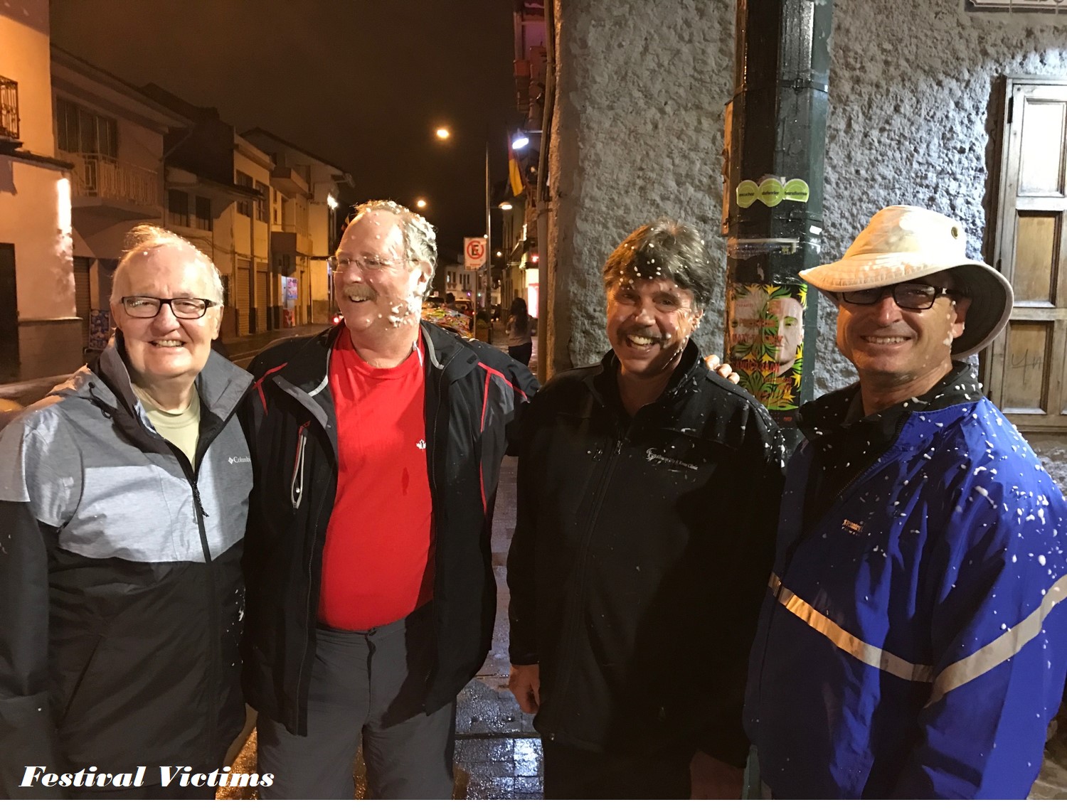 It’s still Carnival time. On or about February 25, 2017 at 20:08 hours, several docs and Don, our volunteer IT expert were obeying all local laws and walking several blocks east of Hotel Crespo, when they became unconsenting victims in a drive by foaming. It is alleged that the perpetrator was a a young girl, leaning out of a car with a foam sprayer. Dr. Rod definitely got a ear full….of foam! With good humor, the docs tell us this is how they prefer to be thanked!