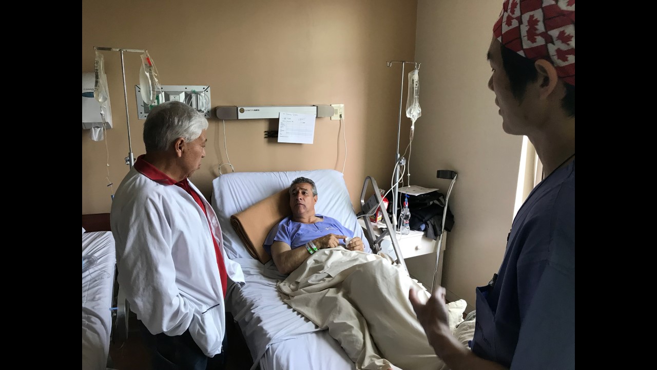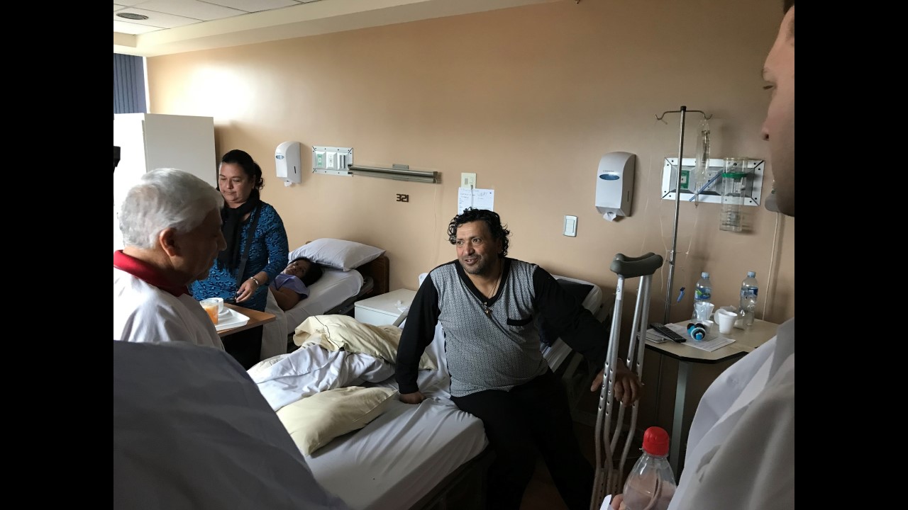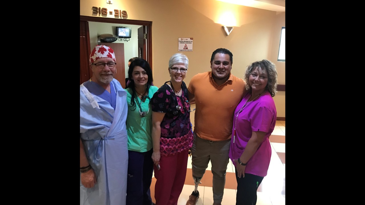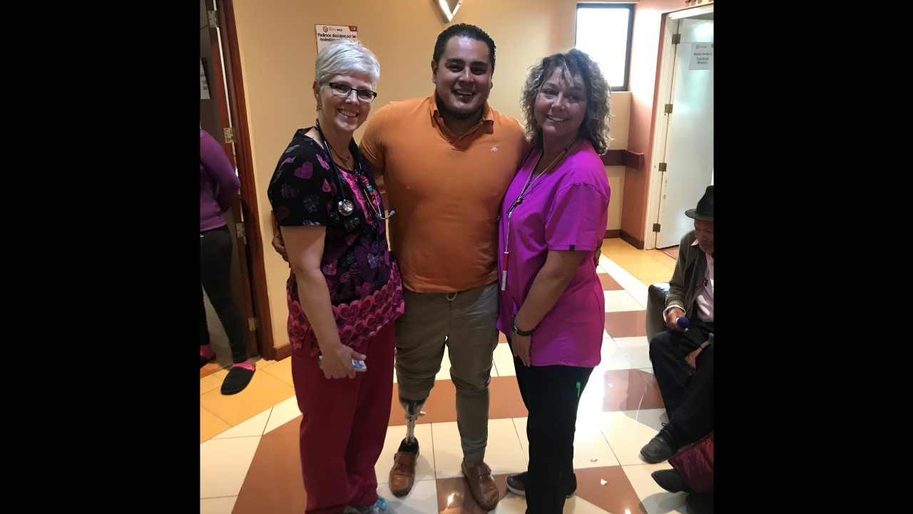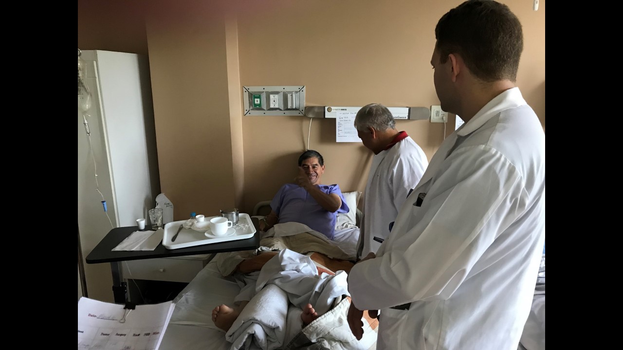 This morning started with some excitement for the True North team. Freddy, one of True North’s star patients from last year’s mission, stopped by for a surprise visit with his family at the Santa Ines Hospital. For those who may not remember, Freddy had his right leg amputated below the knee by the True North team after previously having a total of 48 surgeries on his leg. During his visit, Freddy stated he no longer suffers from any pain! He is able to wear his prosthetic leg for the whole day (which is no small feat) and is currently working part-time so he can pay for his last year of school, where he is studying marketing.