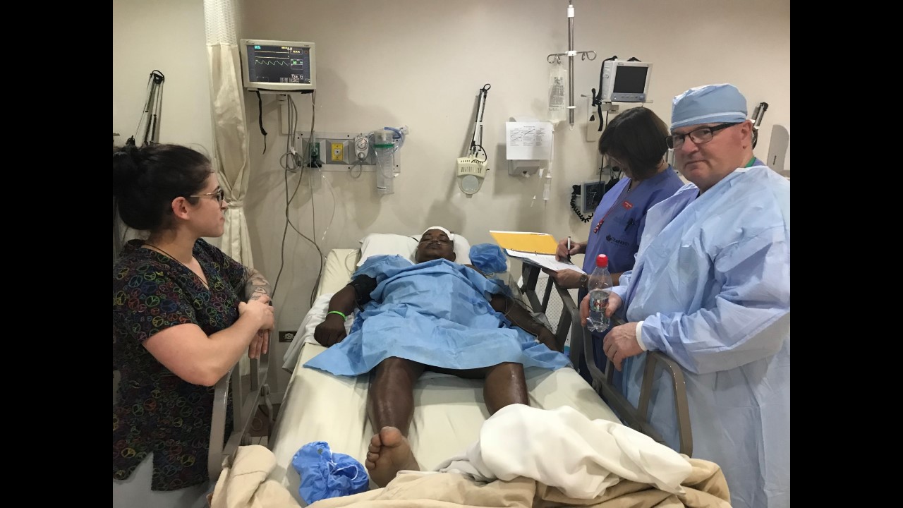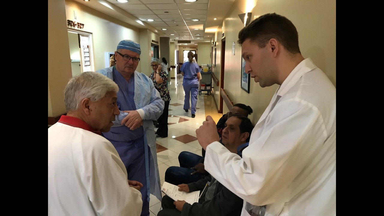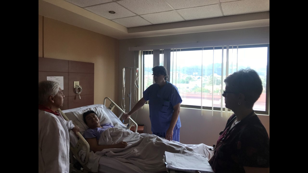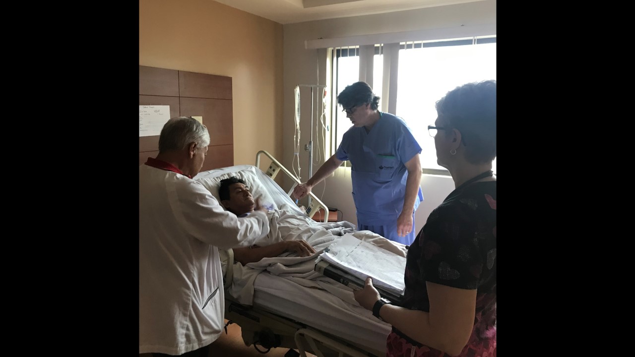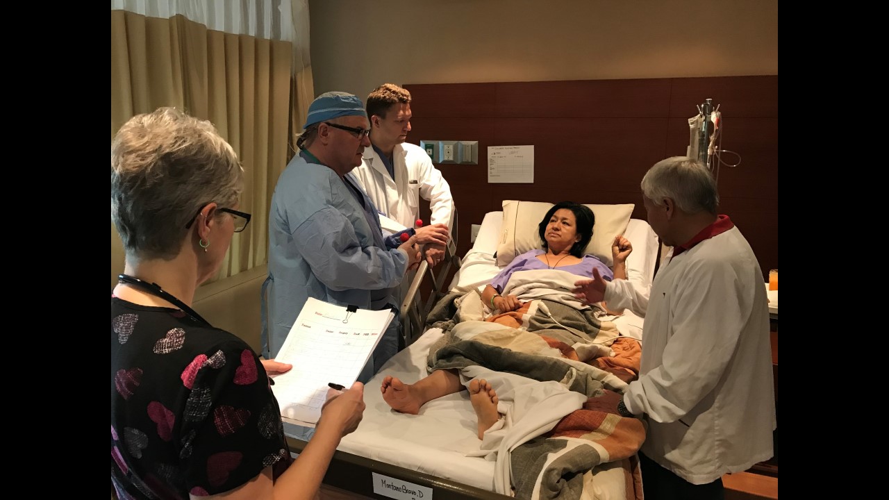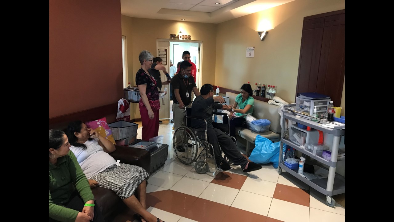 This morning started with some excitement for the True North team. Freddy, one of True North’s star patients from last year’s mission, stopped by for a surprise visit with his family at the Santa Ines Hospital. For those who may not remember, Freddy had his right leg amputated below the knee by the True North team after previously having a total of 48 surgeries on his leg. During his visit, Freddy stated he no longer suffers from any pain! He is able to wear his prosthetic leg for the whole day (which is no small feat) and is currently working part-time so he can pay for his last year of school, where he is studying marketing.