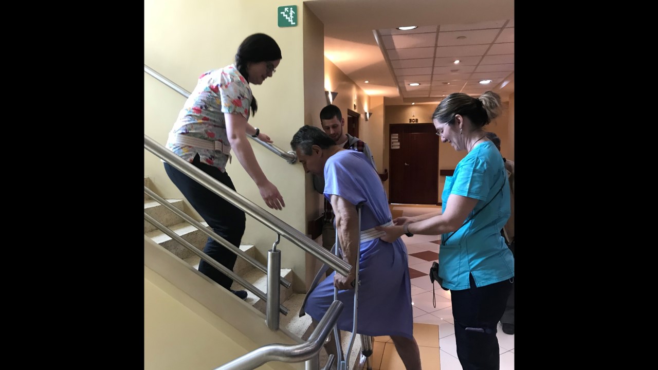 An area Freddy excelled in during his treatment with True North was his exercises with the physiotherapy team. Physiotherapy is one of the last teams seen by the True North patients and is absolutely crucial. Patients are taught precautions to protect their hips and how they can transfer independently and safely. Four hours after patients leave the OR, the physiotherapy team get them up and out of their beds – teaching them how to walk with a walker or crutches and how to properly take-on the stairs. They are also provided exercises to conduct at home and have to re-learn something we easily take for granted – how to go to the bathroom.