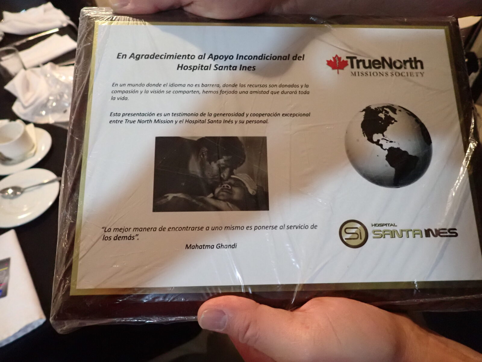 At 1:00pm there was a thank you lunch for the Santa Ines hospital staff put on by True North Missions Society. Many thanks to the Rotary members of Cuenca who served the meal. We had vegetables, salad, empanadas and cake that were provided to the hospital staff who helped and supported us through the week. Dr. Powell thanked Bruno the hospital director, the staff and the many members of the Rotary. A plaque and True North Missions Society team shirt was presented to Bruno. It is only a small token of our gratitude and thanks, but it is heartfelt. We could not help the poor in Ecuador without the major contributions and partnership we have with the Santa Ines hospital and the Rotary members of Cuenca. Thank you all!!!!!