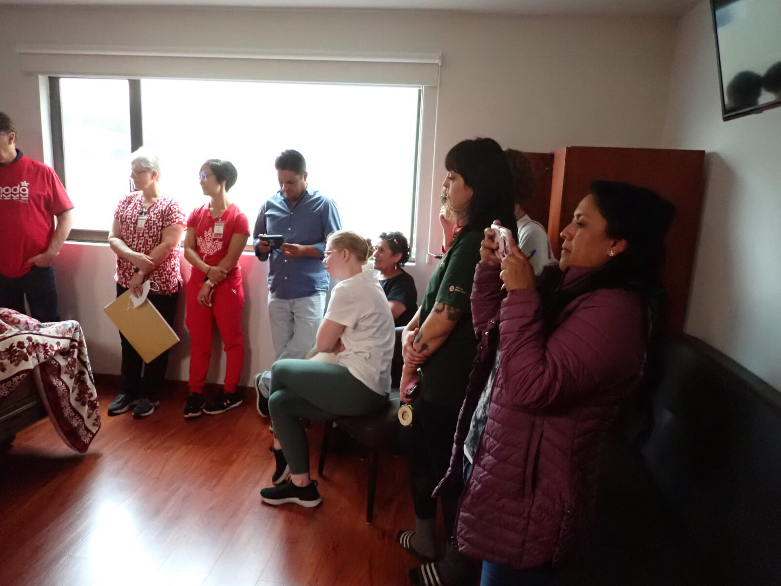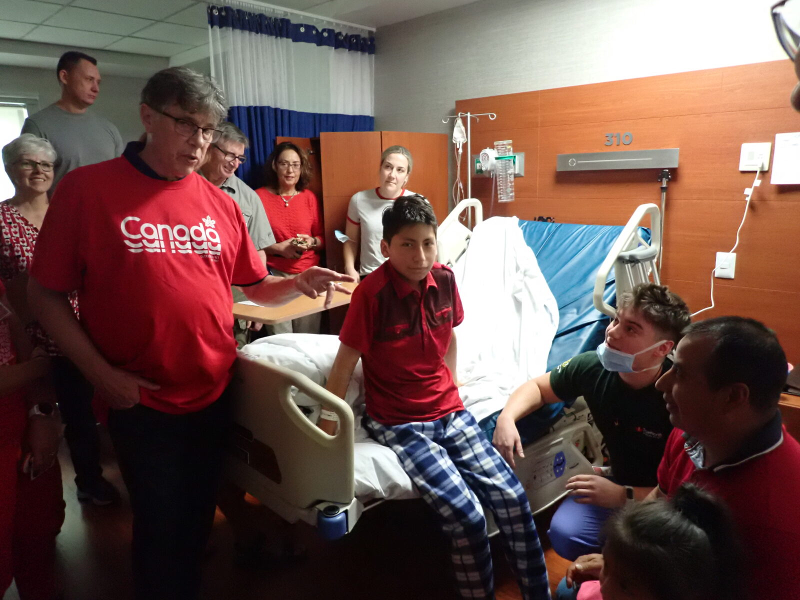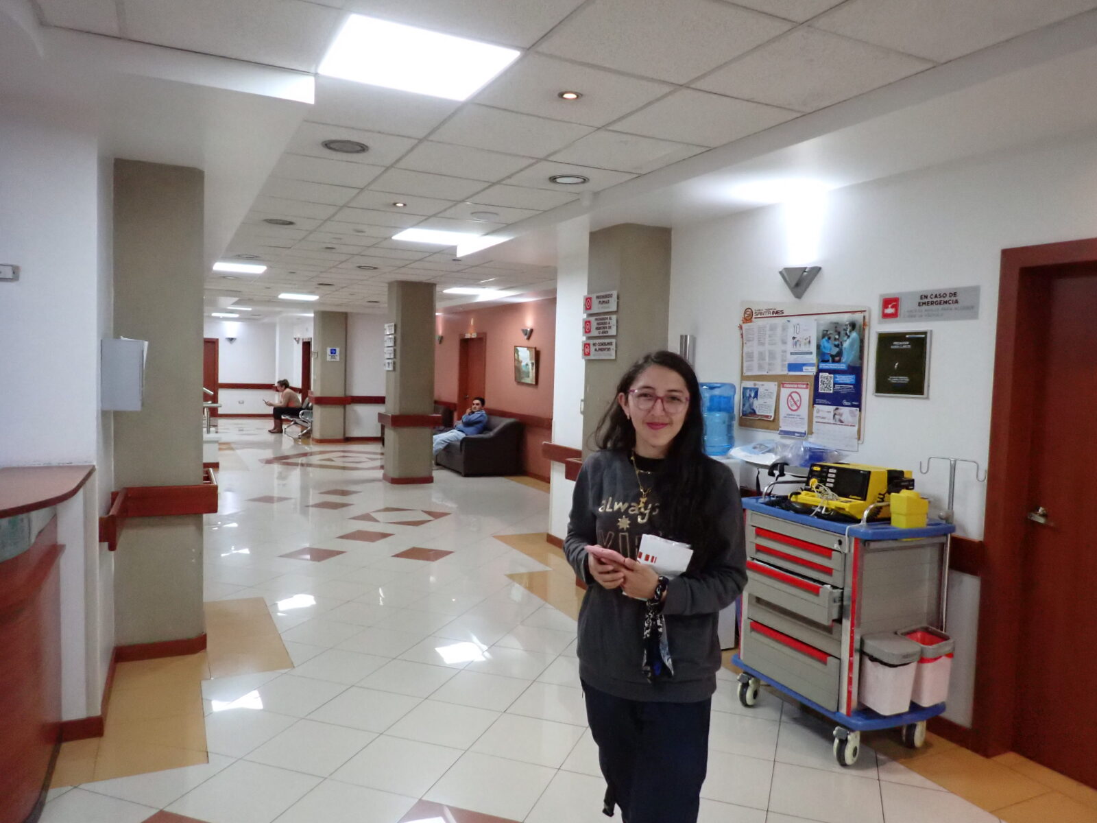 At 10:00AM grand ward rounds started, and the team gathered on the 3rd floor to visit and say goodbye to the remaining patients still at the hospital, many of whom are being discharged today. The team was greeted at the start by a young man and young woman. They were relatives of Nelly, a patient who went home yesterday. They brought a little going away gift and thank you for each team member. Nelly gave us each little miniature Ecuadorian hats decorated with memento’s of Ecuador. They are the perfect size of a Christmas tree ornament, and I will be hanging mine on the tree when I set it up for the Christmas Holidays. She must have spent many hours on the gifts and her relatives were most thankful that we had helped her. She recorded a short thank you video to the team that I hope makes it to a website post.
